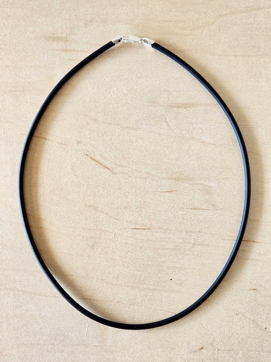 Sterling Silver and black rubber necklace cord: 18"