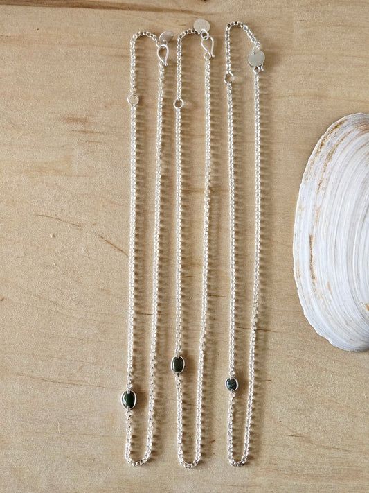 Silver chain with beach stone accent: green/blue