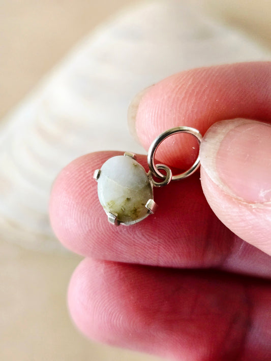 Small White & Moss Green Beach Stone Charm