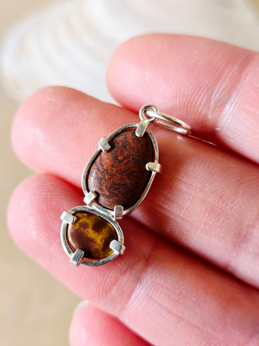 2 Stone Red & Goldenrod Beach Stone Charm