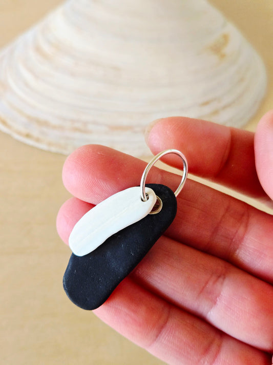 Black Beach Stone & White Shell Charm
