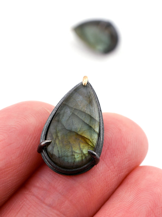 Vesper Studs: Teardrop Labradorite-SS/14k
