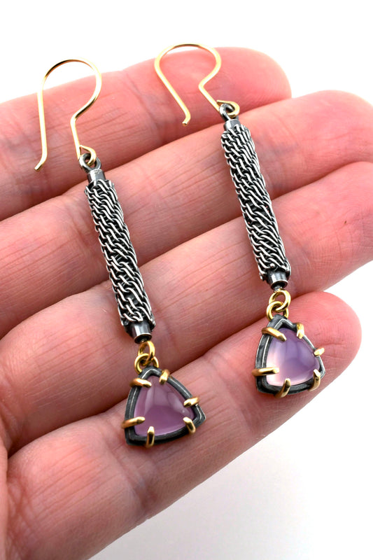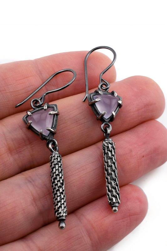 Handwoven textile jewelry: woven and coiled, embracing and interlacing, spiraling strands of silver encircle and twist