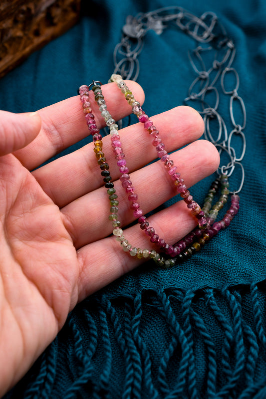 Yellow Jade and Apatite beaded necklace with Tourmaline
