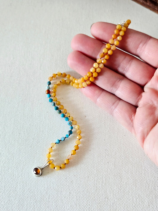 Yellow Jade and Apatite beaded necklace with Tourmaline