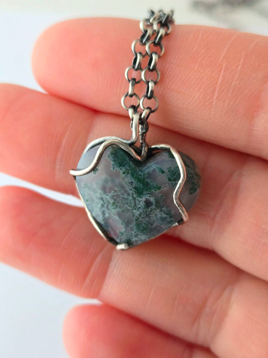 Agua Nueva Agate and Rhodolite Garnet Heart Pendant