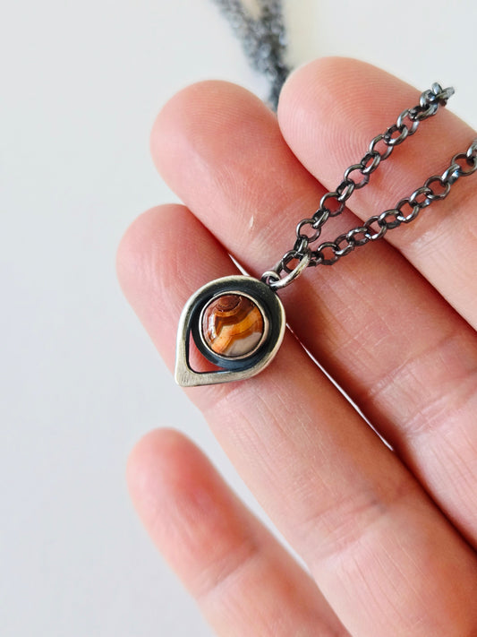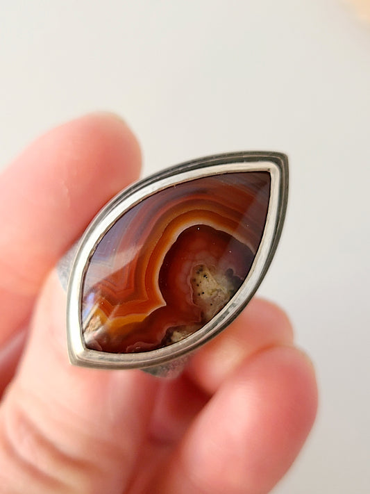 Sinuous lines trace through stone, showing the steadily shifting pathways of water through earth. Jewelry inspired by the layered bands of color winding through unique agates.
